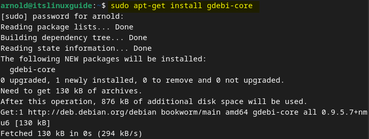 One thing to mention here is that you need to install Gdebi first on Debian as it does not come pre-installed on it. So in that case use the below command which will install its command line version: