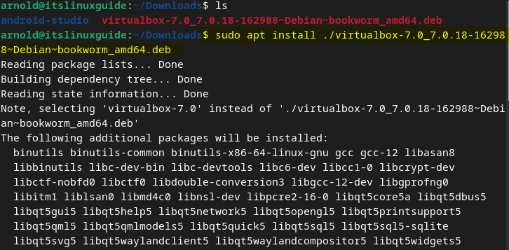 sudo gdebi virtualbox-7.0_7.0.18-162988~Debian~bookworm_amd64.deb