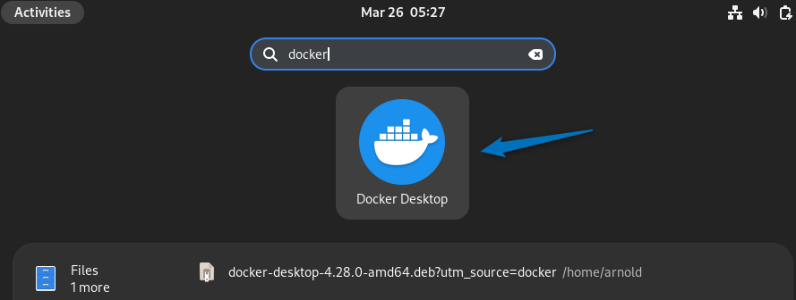 Now use the Debian default package installer to install Docker desktop using its deb file: