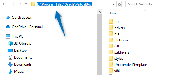 To enable virtualization you need to first copy the path of the directory where the virtual box is installed on your system: