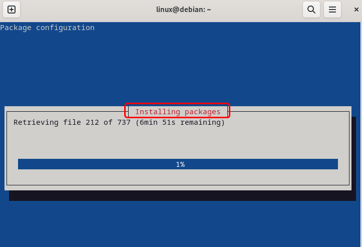 To start the process of KDE installation on Debian 12 run the tasksel utility:
