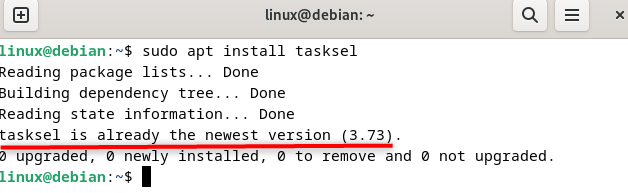 The tasksel is a handy command-line utility in Debian-based distributions that allows you to install predefined sets of packages called tasks. You can also use it to install KDE on Debian 12, usually, it comes preinstalled with Debian 12. If in any case it is not installed then run: